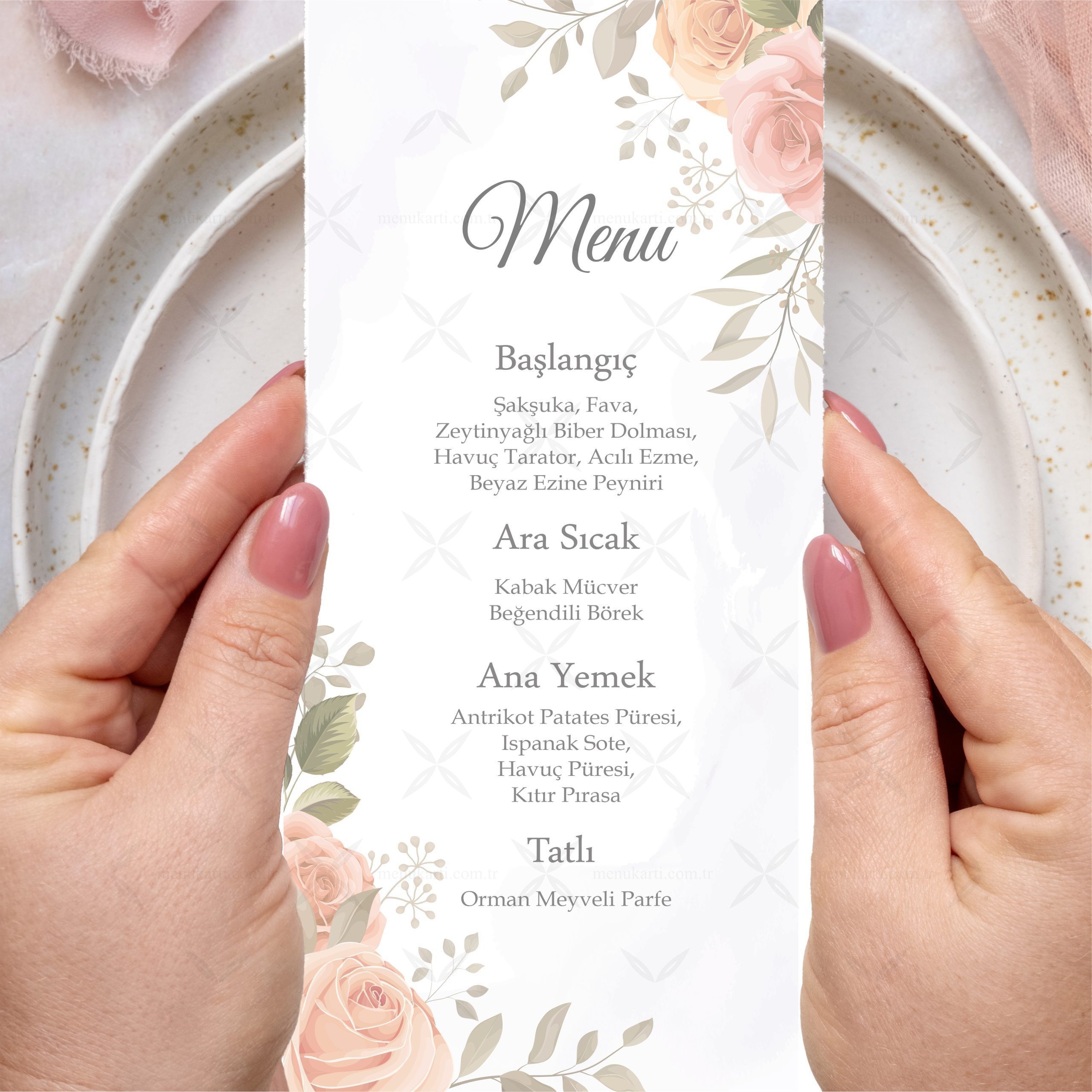 Düğün, Kına veya diğer organizasyonlarınızda kullanabileceğiniz menü kartı örneklerimiz büyük bir titizlikle baskı yapılıp, en kısa sürede sizlere ulaştırılmak üzere kargoya verilmektedir.