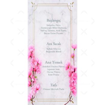Düğün, Kına veya diğer organizasyonlarınızda kullanabileceğiniz menü kartı örneklerimiz büyük bir titizlikle baskı yapılıp, en kısa sürede sizlere ulaştırılmak üzere kargoya verilmektedir.